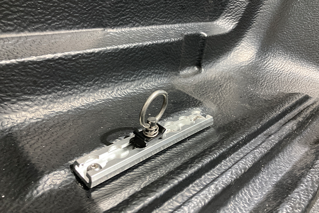 Tie down Rails for securing load in tub.