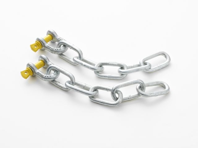 Kit contains 2x D-shackles with chains attached